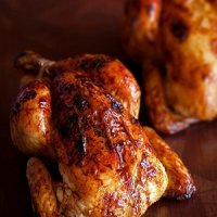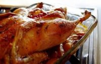 Вынимаем из духовки курицу и аккуратно со всех сторон промазываем ее полученной смесью из апельсина, меда и специй. Возвращаем все в духовку и еще час запекаем. Пока курица будет готовиться, на противень будет вытекать сок – во время готовки этим соком можно поливать курицу для сочности и красивой корочки.