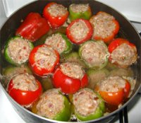 -_Перец зеленый – один кг; -_Пол кило мяса; -_Пол стакана риса; -_Две головки лука репчатого; -_По вкусу соль;