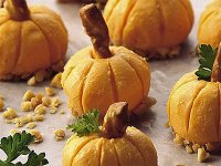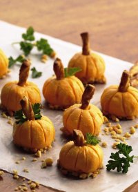 Закуска Тыква на Хэллоуин![]() - 200 грамм сливочного сыра; - 100 грамм твердого сыра; - две столовые ложки арахиса; - 4 кусочка хлеба; - столовая ложка сметаны; ![]() - по вкусу куркума; - 60 грамм вишни. Как готовиться блюдо? Добавляем к творожному сыру сметану, также добавляем куркуму. Все хорошо смешиваем и отправляем в холодильник минут на двадцать. На мелкую терку натираем сыр. Делим на части творожный охлажденный сыр по количеству будущих тыковок. Лепим из сыра лепешки. Укладываем сверху тертый сыр. Опускаем в центр лепешки вишню вяленую и лепим затем шарик. ![]() В центр тыковок вставляем палочки из хлеба. Украшаем все петрушкой. Перед подачей на стол охлаждаем. Эта праздничная закуска прекрасно подходит к слабоалкогольным напиткам. Приятного аппетита! |