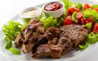 - килограмма два шеи свиной средней жирности; - ложки две столовые аджики; - два зубца чеснока; - масло оливковое «экстра вирджин»; - ложка столовая перца душистого горошком; Для красивой подачи можно взять по вкусу соус ткемали, лаваш и нарезанную свежую зелень с овощами.