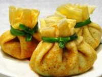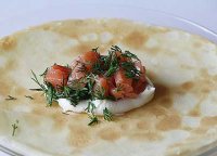 Далее соединим края блинчика и зафиксируем их пёрышком зелёного лука. Проделаем то же самое с оставшимися блинчиками. Приятного аппетита! Нам нужно приготовить заранее: • 2 куриные яйца, • 1 ст. л. сахара, • 500 мл сыворотки, можно брать молоко либо кефир, • 2 щепотки соли, • 3 – 4 ст. л. масла растительного, • Форель слегка солёная, • Творожный сыр, • 250 г муки, • Зеленый лук, • Укроп.