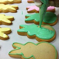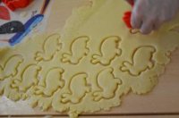 После этого тесто раскатывается в пласт и с помощью формочки в виде кролика вырезается печенье. Берем противень для запекания и выстилаем его листом пергамента. Перемещаем на противень наше печенье, запекаем его минут пять в духовке, которую мы разогрели до температуры в 180 градусов. Готовое печенье остужаем.