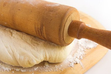 Перед самой раскаткой, в тесте делаем небольшую выемку. Ели она не меняет форму в течение пяти минут, то тесто уже максимально подошло – пришло время раскатывать. Желательно проводить операцию с одной стороной и очень осторожно.