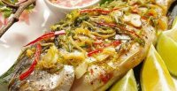 Выкладываем рыбу на противень. Помещаем в предварительно разогретую духовку на 30-40 минут при температуре 180-200° С. Проверить готовность рыбы можно с помощью ножа. Если он легко отломает кусочек – рыба готова и ее можно подавать к столу. Рыбу можно подавать с любым гарниром. Пикантность гарниру придаст соус, который остается в фольге поле готовки.