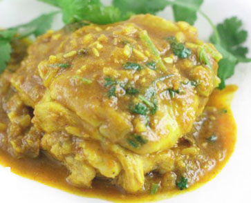 ИНГРЕДИЕНТЫ: •_300 г – куриная грудка; •_1шт. – лук; •_3-4 зубчика чеснока; •_300 мл кокосового молока; •_1 ст.л. тертого тмина; •_1 ст.л. гарама масала; •_1 ч.л. паприки; •_Соевый соус, перец, соль – добавляем по вкусу. Приготовление: Вначале берем лук и чеснок, которые мелко нарезаем и после обжариваем в масле на сковороде. После обжарки содержимое выкладываем на тарелку. Порезанное на небольшие кусочки мясо также обжариваем (желательно в той же сковороде), после добавляем остывшие лук и чеснок. Все это хорошенько в процессе перемешиваем, добавляем по очередности наши приправы, солим и перчим. Когда мясо приобретет золотистый цвет – вливаем кокосовое молочко и оставляем тушиться примерно на 10 минут. Мясо лучше подавать к столу с рисом, добавив в тарелку свежих овощей. Вот и всё – приятного аппетита!