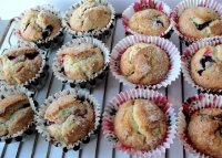 Заменить голубику можно на малину или клюкву. Ягоды могут быть заморожены, в данном случае лучше их не размораживать, а в тесто положить прямо так (в противном случае ягоды выпустят много воды и маффины получатся мокрыми).