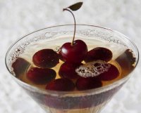 На дно бокала или фужера наливается две столовые ложки шампанского, ложится вишенка и все ставится в холодильник. Когда все застынет, небольшое количество шампанского вновь наливается в бокал и убирается все в холодильник. После застывания наверх выкладывается слой вишни. Все залить вновь и охладить.