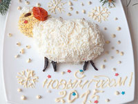 Теперь беремся за украшение. Из большой кураги делаем ушко, из изюма глазик овечки, из чернослива делаем небольшие ножки. Также украшаем все по вкусу и подаем на Новогодний стол.