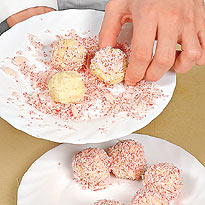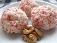 Рафаэлло для романтического ужина![]() Что нужно для готовки? - оливки без косточек; - 4 ложки столовые майонеза; - ложки 2 столовые масла оливкового; - крабовые палочки (упаковка); - зубчик чеснока; ![]() - грамм 100 пармезана; - грецкие орехи; - укроп. Как готовить? Нарезаем на небольшие кусочки орехи. Крабовые палочки и сыр натираем на мелкую терку. ![]() Перемешиваем майонез и сыр. Добавляем туда же натертый на терке чеснок. Смешиваем до однородности. Скатываем из этой массы шарики, в центр шарика вкладываем по оливке. Выкладываем на плоское блюдо натертые крабовые палочки, обваливаем в них равномерно наши шарики. Закуску теперь можно отправить в холодильник до застывания. Несомненный плюс блюда в его легкости, простоте, сытности и уместности к любому из домашних праздников. ![]() Укроп и перец промываем и мелко измельчаем. Перемешиваем с маслом оливковым и подаем к нашей закуске. Приятного вам аппетита! |