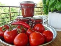 Готовим домашний кетчуп![]() - пол килограмма яблок; - треть стакана соли; ![]() - пол чайной ложки корицы молотой; - два килограмма помидоров; - чайная ложка красного молотого перца; - ложка чайная черного молотого перца; - на кончике ножа мускатный тертый орех. Как готовить наш домашний кетчуп? ![]() Ни с яблок, ни с помидоров не надо снимать кожуру. Через мясорубку пропускаем яблоки и помидоры. Перекладываем наше яблочно-томатное пюре в кастрюльку с подходящим размером. Добавляем сахар и соль, все поставить на средний огонек и довести до кипения. После кипения уменьшаем огонек и варим время от времени все перемешивая часа два. За минут десять до окончания готовки соуса добавляем черный и красный перец, мускатный орех и корицу. Все тщательно перемешиваем. Снимаем с огня, немного остужаем и перетираем через мелкое сито соус. Все разливаем по стерилизованным банкам, закрываем крышкой и даем остыть. Все храним в холодном месте. Приятного Вам аппетита. |