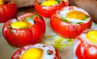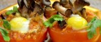 Фаршированные овощами помидоры с запеченным яйцом![]() - помидоры среднего размера с достаточно толстой кожицей; - перепелиные яйца; Для рагу из овощей: - грибы; ![]() - лук; - морковь; - баклажан; - томатная паста; - стебли сельдерея; - зеленая фасоль; ![]() - имбирь. Как готовить блюдо? Для начала обрезаем верхушки помидоров и вычищаем внутренности. Затем эти внутренности смело можно добавить в овощное рагу. Овощи для рагу мелко нарезаем, также туда добавляем мелко нарезанную зелень, ложку томатной пасты. Все хорошенько перемешиваем, можно минутку обжарить для того, чтобы овощи дали сок. Наполняем наши помидоры обжаренным рагу, разбиваем сверху перепелиное яйцо. Слегка сверху присыпаем зеленью и приправами. Ставим наши помидоры в духовку или микроволновку на минуту до готовности яйца. Приятного аппетита! |
