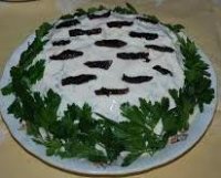 - грибы (шампиньоны или лесные) – 200 грамм; - один лук репчатый; - грамм 300-400 филе куриного; - 3 яйца; - два свежих огурца; - 100 грамм чернослива; - зелень и майонез.