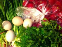 - вареные яйца; - редис; - лук зеленый перьевой;