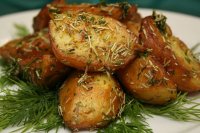 Если мы запекаем все на пикнике, то можно завернуть наш картофель в фольгу и отправить в теплые угли. Если запекаем все в духовке, то разогреваем ее в начале до 200 градусов. Выкладываем картофель в форму, запекаем с каждой стороны по минут 20-25.