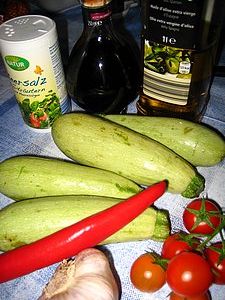 - три кабачка (среднего размера, желательно молодых и мягких); - штучки четыре помидора; - 6 столовых ложек оливкового масла; - 100 грамм твердого сыра;