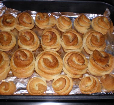 Вкусные булочки за пять минут![]() Что нужно для готовки? - дрожжевое готовое тесто; ![]() - три столовые ложки сахара; - одна столовая ложка корицы. Как готовить булочки? Быстроту данному рецепту обеспечивает наличие готового теста. Тесто нужно раскатать в большую тонкую лепешку. Смазываем в начале лепешку сливочным маслом, посыпаем сверху сахаром и корицей. ![]() Тесто нужно свернуть в тугой рулет, все нарезаем на одинаковые куски. Выкладываем все вертикально на сковородку или противень, сверху смазываем взбитыми яйцами. Выпекаем в духовке до готовности. Приятного аппетита! |