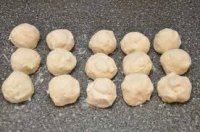 Перетираем через сито творог, смешиваем его с мукой, яйцом и овсяными хлопьями. Посыпаем полученное тесто мукой, скатываем из теста колбаску, которую нужно нарезать на небольшие кусочки. Из данных кусочков лепим небольшие кружки.