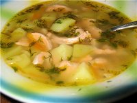 Суп рыбный с сыром плавленым![]() - три картофелины; - два плавленого сырка; - одна головка лука; - по вкусу соль и молотый перец; - два листа лаврового; - укроп по вкусу; - пол кило белой рыбы. Как готовиться суп? Картофель и рыбу нарезаем кубиками. Добавляем в кипящую воду перец, соль, лук (нарезанный мелко), рыбу. Через пару минут добавляем картофель и пару листов лаврушки. За пару минут до готовности картошки добавляем сыр, помешиваем до растворения. При необходимости солим. Добавляем укроп, варим минуты две. Снимаем с плиты и накрываем полотенцем для того, чтобы суп настоялся и стал ароматнее. Приятного аппетита! |