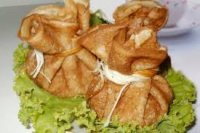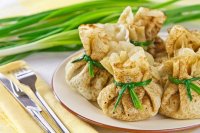 Закуска Мешочки Деда Мороза![]() - молоко 300 мл; - мука 150 грамм; - грамм 50 сыра твердого; - два яйца; ![]() - ложки две масла растительного; - соль. Начинка мешочков: - грамм 200 куриной печени; - один пучок петрушки; - ложки две столовые муки; - лук зеленый; - масло растительное; - соль. ![]() В глубокую миску разбиваем яйца, вливаем масло растительное, молоко, смешиваем до однородности. Всыпать туда муку просеянную, перемешать, посолить, добавить натертый на мелкую терку сыр и нарезанную мелко зелень. Все смешать. Печем из заготовленного тонкие блинчики небольшого размера. Обжариваем с двух боков, однако не зарумяниваем слишком. Некрупно нарезаем печень, промываем, панируем в муке, смешиваем с солью и жарим в сковородке до готовности. Остужаем и вместе с рубленной петрушкой все измельчаем в блендере. Добавляем к начинке сыр творожный, солим и смешиваем. В центр каждого блинчика выкладываем по ложке столовой печени, поднимаем края блинчика, формируя мешочек и связываем зеленым перьевым луком. Выкладываем закуску на застеленное салатными листьями блюдо и подаем как закуску на стол. Приятного аппетита! |