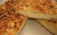 Это блюдо настолько уникальное и вкусное, что его смело подать можно и на праздничный стол. Делать все просто, справится и начинающий кулинар. Что нам пригодится? 5 шт яиц, пол кило творога, 200 грамм масла сливочного, стакан сахара, щепотка соли, два стакана муки, чайная ложка соды по желанию ваниль (хватит щепотки). Как готовится? Холодное масло сливочное натирают на терке. К масслу добавляется мука, сода погашенная уксусом (или соком лимона), 2 ложки сахара, соли щепотка — все перетирается руками до крошки. Оставшийся сахар размешивается, яйца и творог для начинки добавляется (взбивать не надо). При желании добавляем щепотку ванилина. Смазываем маслом форму, на эту форму выкладываем 2/3 перетертой крошки. Сверху наливаем яично творожную смесь, высыпаем наверх оставшуюся крошку. Все выпекается в разогретой до 180 градусов духовке. Хватит примерно пол часика (уже исходя из размеров формы). Достаем выпечку и охлаждаем. Приятного аппетита.