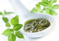 Готовим соус песто![]() Ингредиенты для приготовления соуса песто: - 100 грамм базилика; - 130 грамм оливкового масла; - 10 грамм кедровых орехов; - 25 грамм сыра пармезан; ![]() Как приготовить соус? Базилик нужно взять самый лучший и самый свежий. Можно взять для соуса совсем молодой, однако даже в данном случае пригодятся только листья. Всю ботву нужно решительно обрубить (ее можно бросить в соус томатный). Кстати, определенный нюанс готовки песто по-итальянски – базилик перед приготовлением не моют. Максимум – его можно протереть влажной тряпочкой. Зелень следует отправить с кедровыми орешками в ступу. Есть разные рецепты, в некоторых в качестве ингредиента приготовления можно встретить пинию (сосну). В идеале ступа должна быть из слоновой кости или мраморная. ![]() Все взбиваем, при этом доливая по чуть-чуть масло оливковое. Следует также добавить чуть-чуть чеснока. Соль не понадобиться – сыр пекорино достаточно соленый. Сыры добавляются, кстати, в последнюю очередь. Приятного аппетита! |
