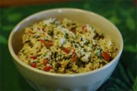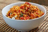 - две столовые ложки сока лайма; - пол стакана соуса сальсы; - пол стакана итальянской салатной заправки; - два с половиной стакана риса; - стакан красного болгарского перца;