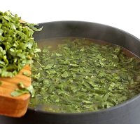 Готовим борщ с зеленым луком![]() Что нужно для готовки? - пол кило лука зеленого; - две картофелины среднего размера; - 70 граммов морковки; ![]() - пол стакана сока томатного; - репчатая маленькая луковица; - два с половиной литра бульона; - три вкрутую сваренных яйца; - укроп и соль для посыпания. Как готовить? ![]() Очищаем картофель и нарезаем кубиками. Закидываем картофель в кипящий бульон, туда же отправляем со сковородки поджаренную смесь. Солим. Минут через десять кипения в блюдо добавляются нарезанные яйца, а также подготовленный лук. С данным луком зеленый борщ должен кипеть минут десять. Оставаться он должен при этом светлый, однако не сырой. Все подаем с ложкой сметаны, слегка посыпав укропом. Приятного аппетита! |