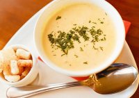 Готовим с зеленью сырный суп![]() - два плавленых сырка; - одна головка лука репчатого; - одна морковка; - по вкусу зелень; - четыре картофелины; ![]() - по вкусу специи. Как готовиться суп сырный с зеленью? Ставим кастрюлю с водой на огонь. Делаем на оливковом масле зажарку из морковки и репчатого лука. Зажарку добавляем в воду, после этого добавляем кубиками нарезанный картофель, по вкусу специи. Когда картофель будет почти готов, следует добавить сыр, который мы либо натерли на крупную терку, либо нарезали мелкими кубиками. ![]() Следует добавить зелень и выключить огонь через минуту. Супу даем постаять немного под крышкой, и со временем его можно кушать. Подать по вкусу также можно с сухариками или хлебом. Приятного аппетита! |